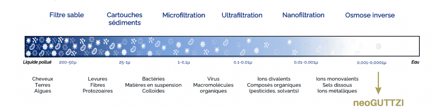 Un système de filtration complet de nouvelle technologie pour une amélioration de la qualité de l’eau qui redonne à l’eau son bon goût naturel grâce au système d’osmose inversée neoGUTZZI.